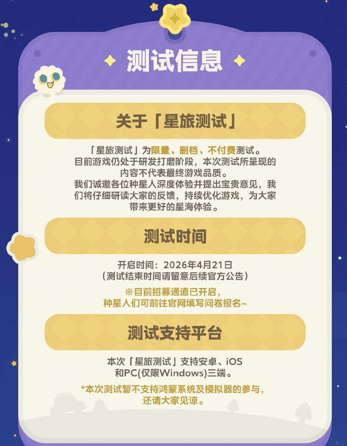 《星布谷地》「星旅测试」正式定档 4月21日,测试招募现已开启!以下是本次测试的FAQ~