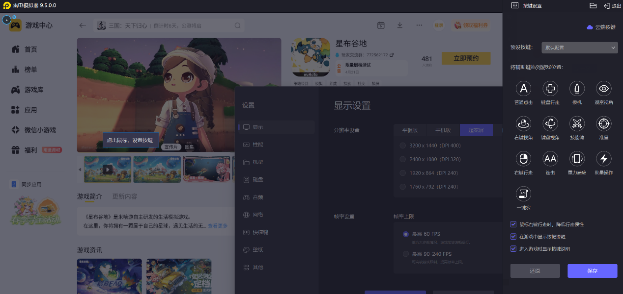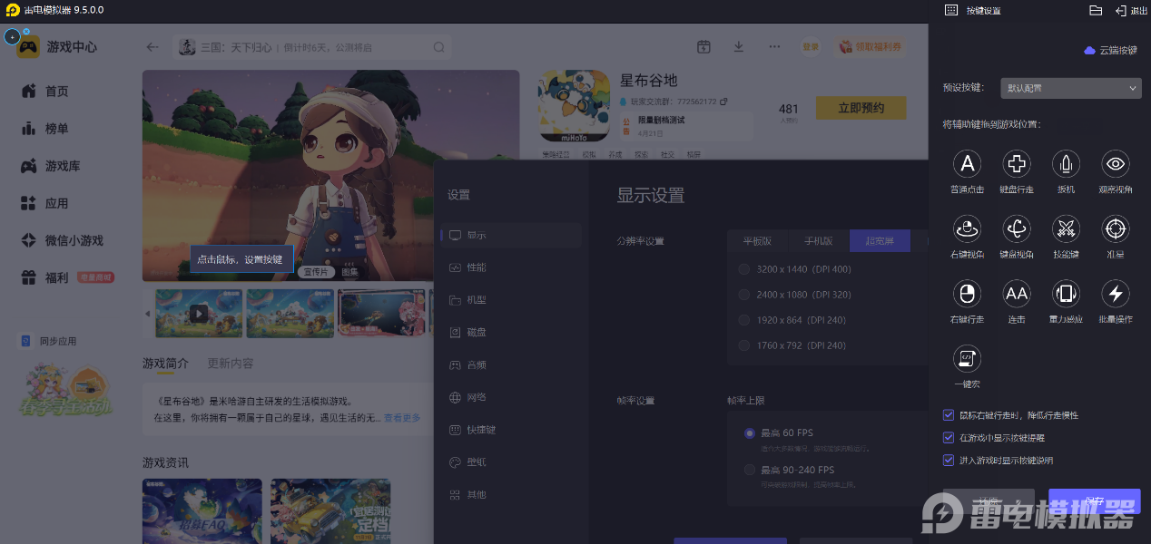 雷电模拟器支持键鼠配合操作,游玩星布谷地时可以有效减少操作失误。游戏中包含装修建造、探索互动等多种操作,手机触屏容易出现按键误触的情况,而键鼠操作的精准度更高,点击、拖动等操作都能稳定完成。无论是调整家具位置,还是在星球上探索互动,键鼠都能带来流畅的操作体验,让休闲玩法的过程更顺畅,不用因误触打断游戏节奏,提升整体游玩的顺畅度。