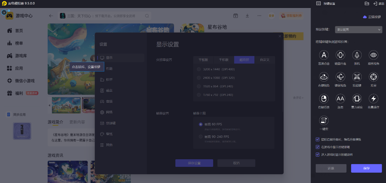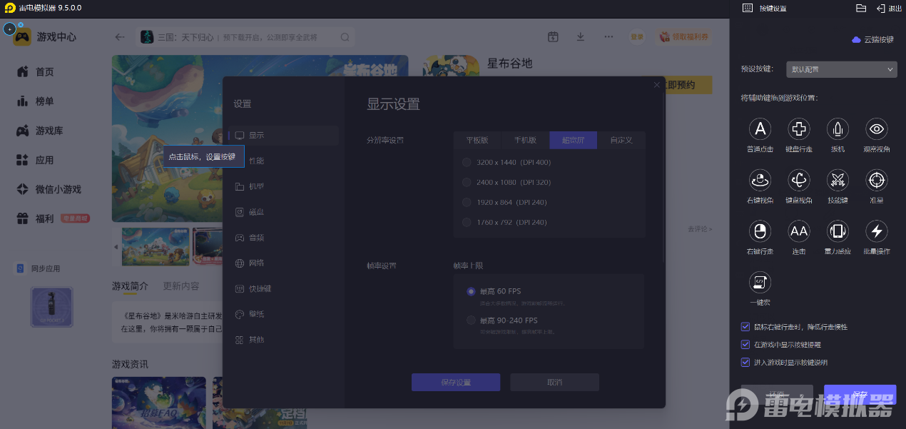 雷电模拟器支持键鼠配合操作,能很好解决触屏操作的误触问题。在星布谷地里进行角色互动、作物照料、甲虫捕捉等操作时,键鼠操控更精准稳定,点击交互、视角移动都能精准完成。长时间游玩时,不会因触屏误触影响操作节奏,和角色对话、完成日常养成操作都更流畅,大幅提升游玩时的操作体验。而且,如果不适应默认按键的话,也可自行修改调整布局,按照自身操作习惯来设置按键位置。