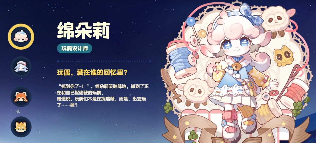 绵朵莉是粉色小羊拟人形象,整体造型柔软治愈,脖颈挂有铃铛,随身带着手工材料包。她是谷地的玩偶设计师,擅长制作各类毛绒玩偶。和她互动能获取装扮与装饰灵感,通过送礼、陪伴等方式提升好感,还能解锁玩偶背后的温馨小故事,让游戏体验更丰富。