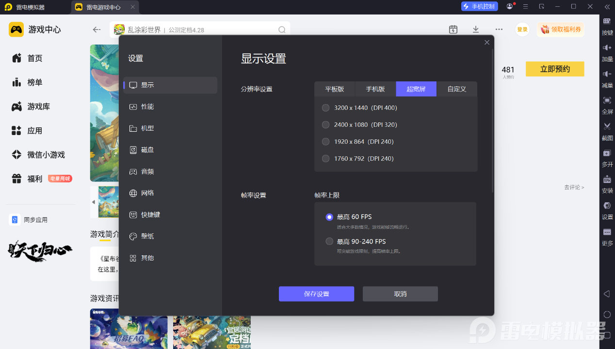 雷电模拟器的超宽屏功能,能大幅提升星布谷地的视觉体验。查看角色立绘时,超宽屏可以呈现更多细节,角色的服饰纹路、装饰配件都能清晰展现,更好地感受角色的造型设计。在游戏场景探索时,超宽屏能拓宽视野范围,避免UI界面遮挡关键画面,不管是巡视种植园、野外寻找甲虫,还是观赏谷地风景,都能获得更完整的视觉效果,让画面呈现更舒适。