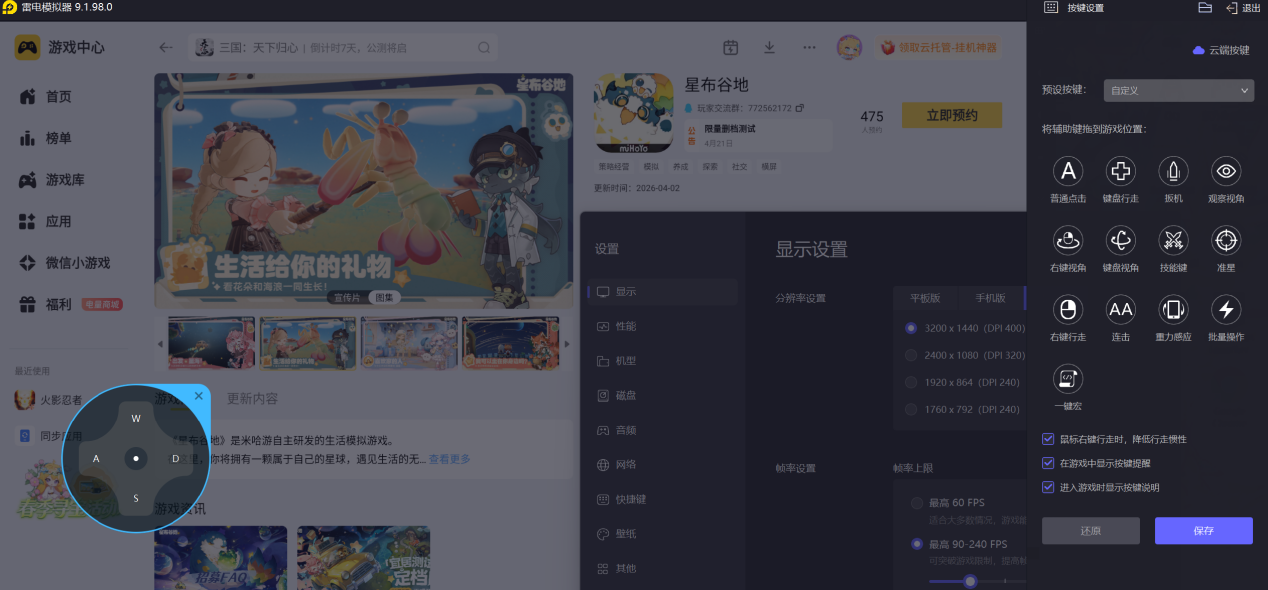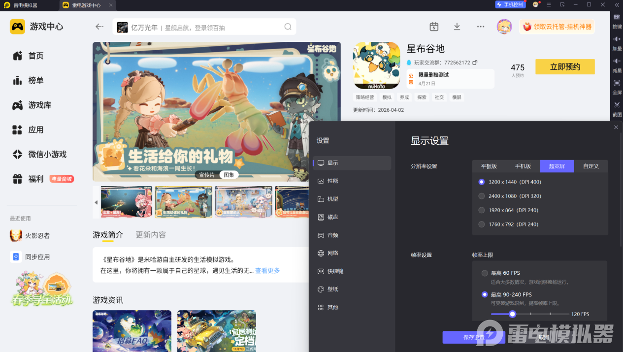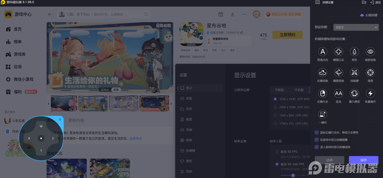 想充分享受星布谷地的社交乐趣,大屏和精准操作是关键。下面来看看雷电模拟器能带来哪些提升。