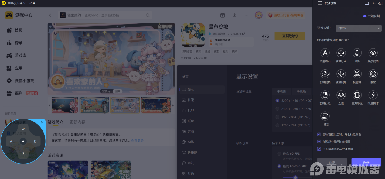 键鼠操作,互动更丝滑。 雷电模拟器支持将闲聊、送礼、提交委托材料等操作绑定到键盘按键上,一键完成日常互动。WASD控制角色移动精准走位,鼠标拖拽调整视角灵活丝滑,装修建造、探索互动时完全不用担心触屏误触的问题。无论是频繁送礼还是循环跑图,整体操作效率都会明显提升。