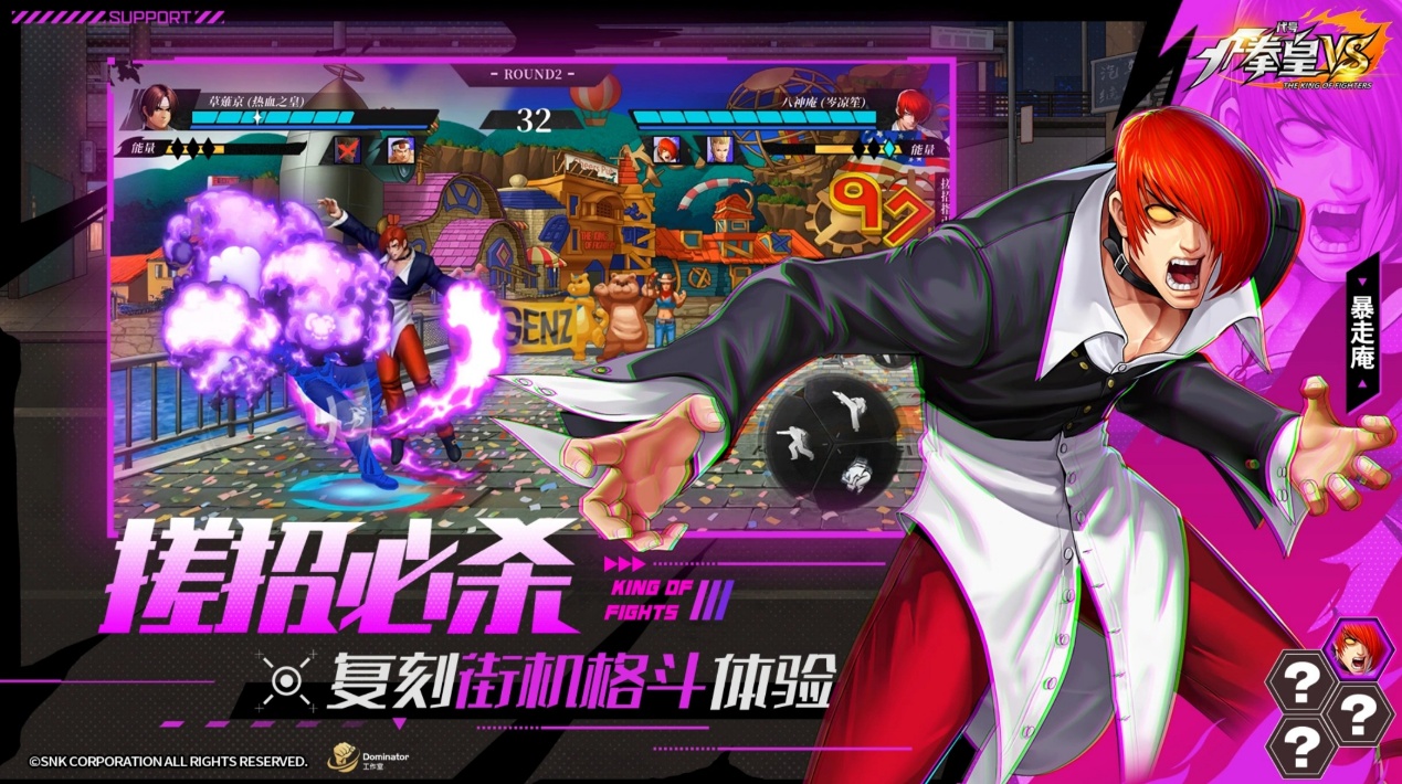 代号拳皇VS收录了草薙京、八神庵、不知火舞等经典拳皇角色,以还原街机格斗为核心设计,支持搓招、连招与必杀技释放,主打公平PVP对战。游戏处于早期研发阶段,已开启共研测试并推出限时集结赛,玩家可与其他格斗爱好者同台切磋,感受原汁原味的热血对抗。