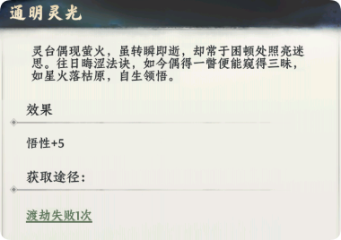筑基之前都不要使用渡劫丹,先渡劫失败一次拿先天气运-通明灵光;结丹期以前可以试两次(突破失败不损失修为但需要时间冷却,冷却时间与当前境界有关,境界越高时间越久)突破结丹后尽量百分百成功率再渡劫不然拖节奏,拿不到也无所谓影响不大