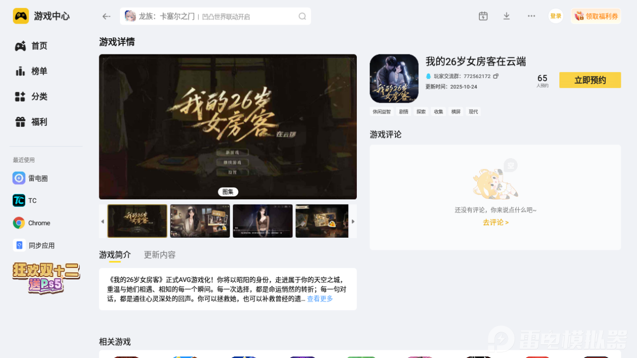 我们在日常的游戏体验期间,其实去使用雷电模拟器来帮自己还是很重要的,想要去进一步了解我的26岁女房客在云端电脑版的使用,那么文内的说明也能带来帮助,有需要就抓紧进入试试吧。