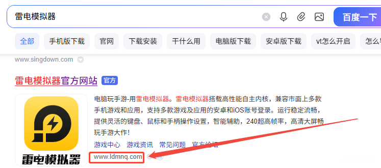 首先需要下载雷电模拟器。打开电脑浏览器,搜索雷电模拟器,注意认准官方域名ldmnq.com,避免进入非官方网站。点击进入官网首页后,直接点击下载按钮就能获取安装包。