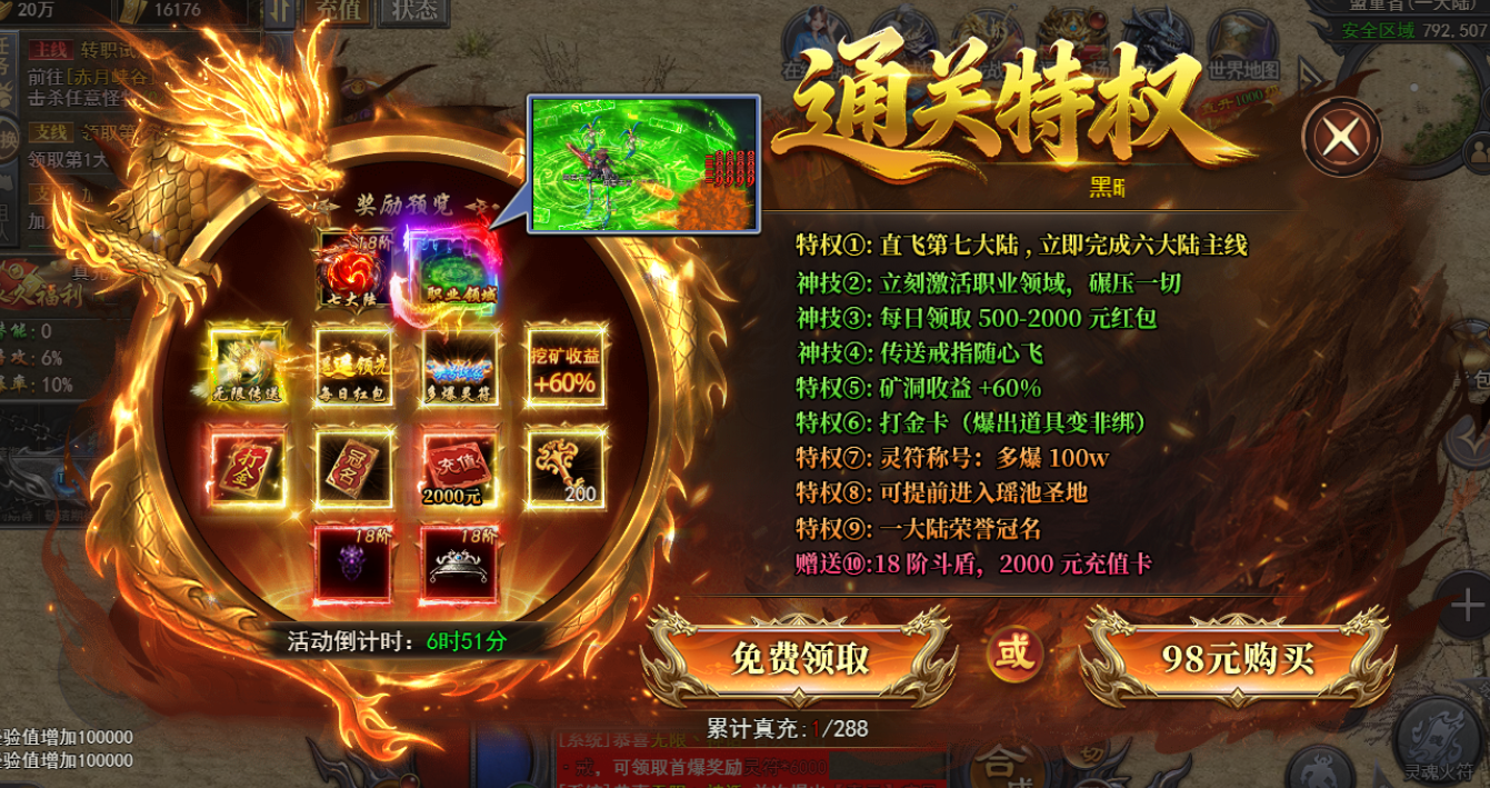 累氪到了 288 直接省下 98 白嫖通关特权落地直飞七大陆,传送戒指随心飞想去哪里点哪里,直接传送,节省大量跑图时间。
