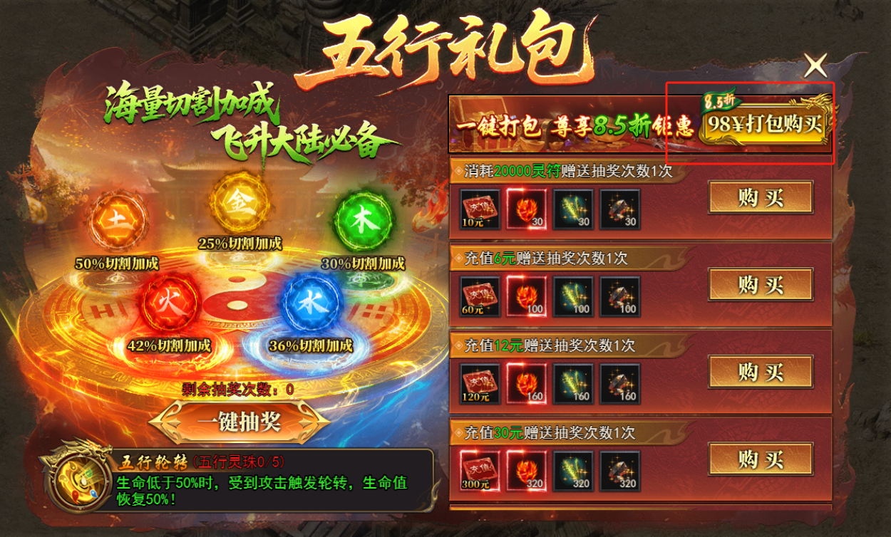 中氪在微氪基础上+98 直充+50 赞助+98 五行(强推)