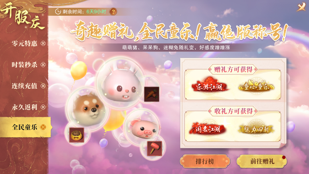 更有高额返利与趣味赠礼互动,与好友互赠随礼提升好感,荣登榜单更能赢得江湖钦羡的绝版称号,让您的侠名响彻四海。