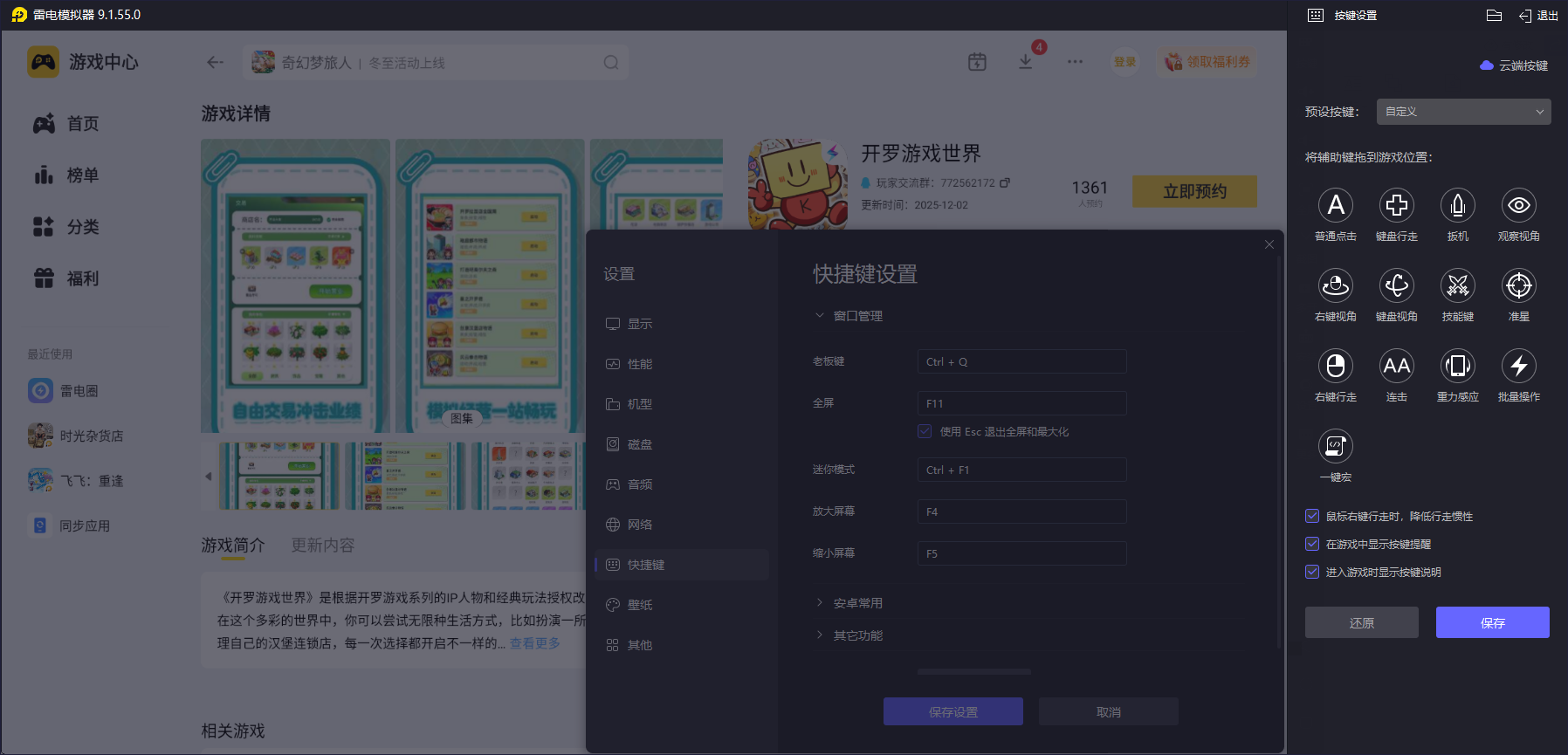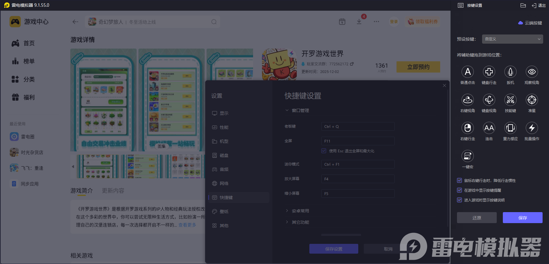 使用雷电模拟器游玩《开罗游戏世界》,能在操作和画面两大核心体验上收获满满加分。操作层面,模拟器支持键鼠映射功能,可以自定义按键,不管是建设建筑、管理店铺资源,还是切换功能界面,操作都顺滑顺手,无需反复调整触控,大幅提升操作便捷度。