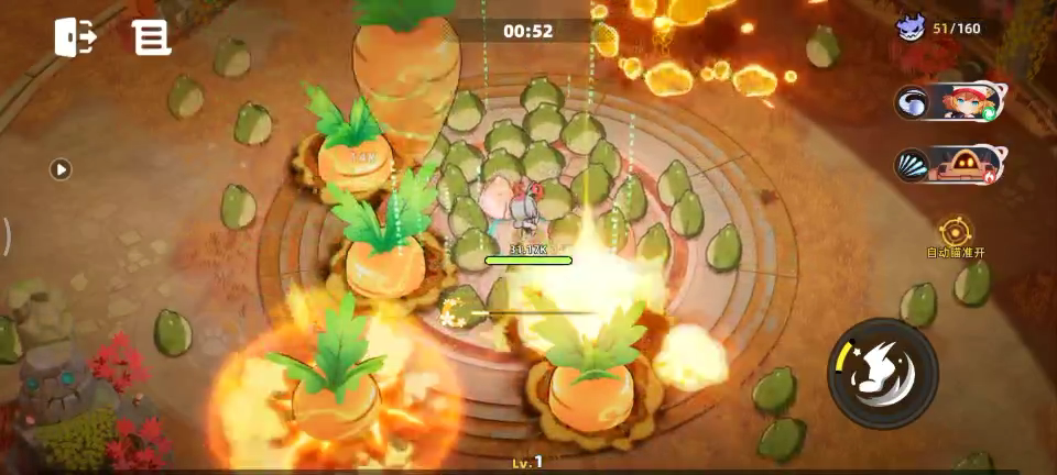 进场时,召唤8个大萝卜下砸,造成攻击力180%的伤害,持续2秒,萝卜爆炸并造成180%的额外伤害。