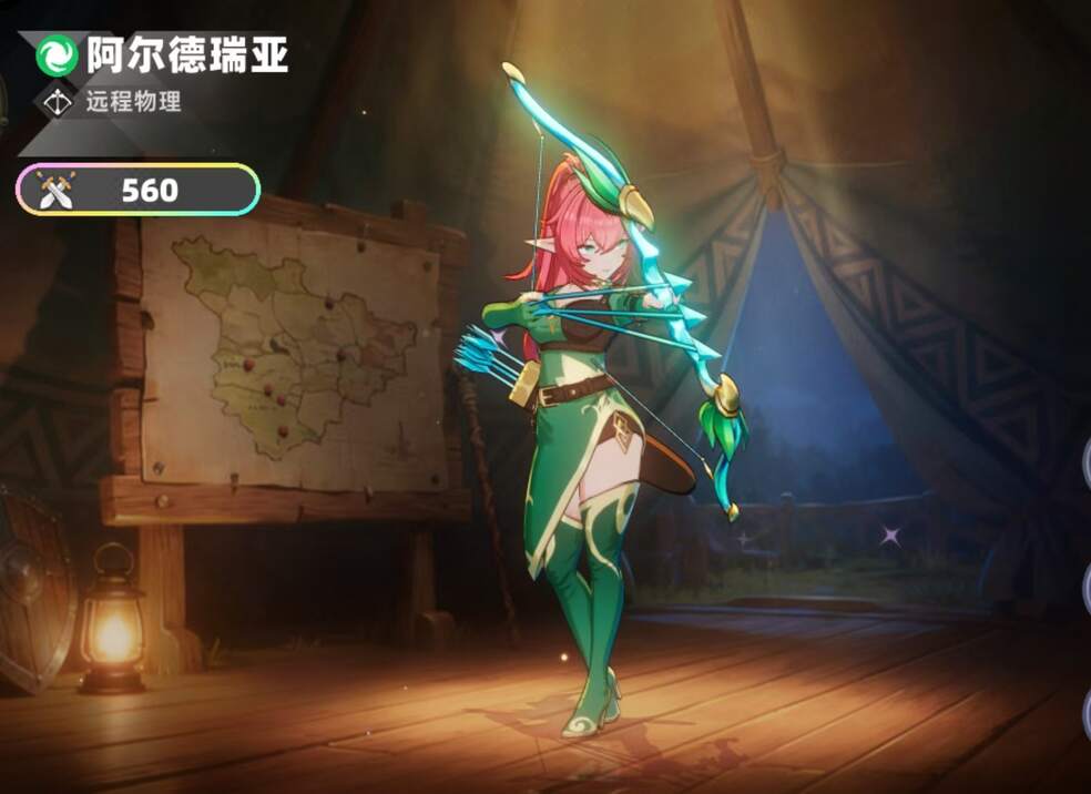 阿尔德瑞亚——风系远程物理角色,红发精灵弓箭手,一身翠绿劲装与红发相映成趣,是林间最灵动的猎手。她能听懂风的语言,箭矢借风势可覆盖整片战场,大范围AOE箭雨,既是守护森林的利刃,也是突破魔物包围的先锋。核心技能“风啸连射”满级后进化为“飓风穿心”,箭簇裹挟风暴之力,一箭就能贯穿敌阵!