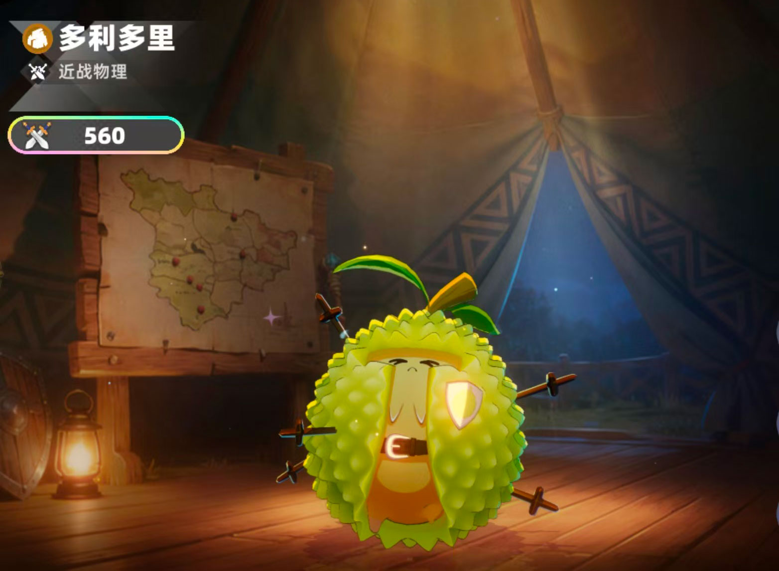多利多里——土系近战物理角色,圆滚滚的Q萌榴莲精灵,外壳带着软乎乎的尖刺,自带呆萌气场却战力拉满。它扎根大地就能凝聚土系力量,凭借厚重身躯发起近战冲击,范围挥击搭配土遁防身,看似笨拙却能在敌阵中稳扎稳打。
