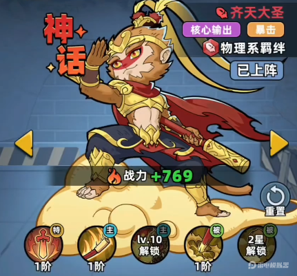 前期可搭配艾达和忍术大师,组成双暴击联动体系,提升控场和清怪效率;中期加入天使、机甲战士,激活物理系羁绊,既补充治疗和护盾,又能增加团队增伤,弥补齐天大圣生存短板。优先将齐天大圣培养至3星解锁专属暴击加成,5星解锁暴击上限,战力会有明显跃升。