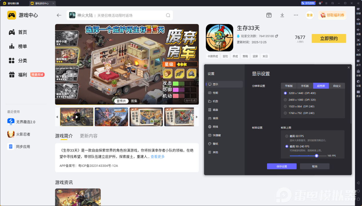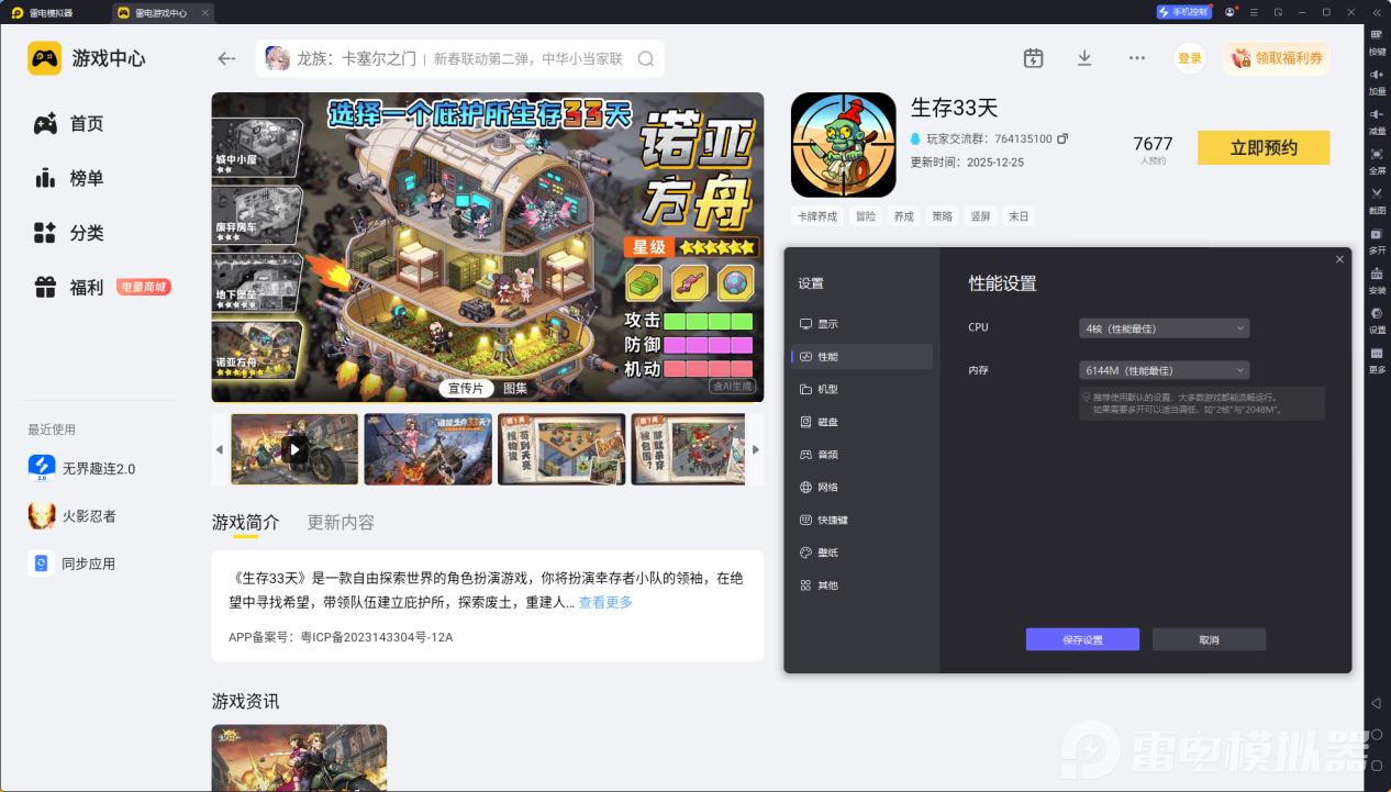 性能稳定流畅,长效挂机更省心。雷电模拟器适配低配置电脑,优化后减少闪退、卡顿问题,长时间刷“尸潮来袭”副本也能稳定运行,无需担心手机发热、续航不足的问题,轻松实现每日抗体收集目标,助力快速解锁生存33天爱达。
