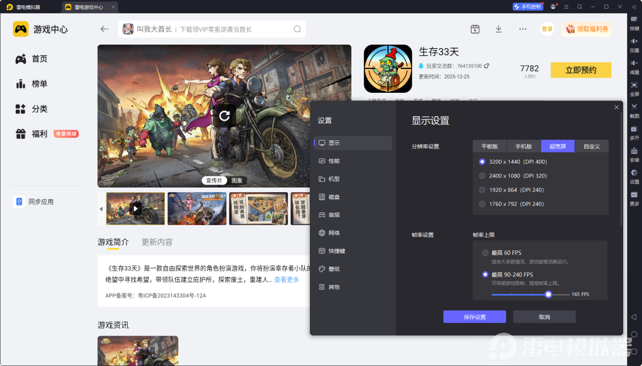 性能稳定流畅,长效挂机无忧。生存33天活动需持续参与4天,频繁切换或长时间挂机易出现卡顿、闪退,雷电模拟器优化内核适配,资源占用少,对各类电脑配置兼容性强,即便长时间挂机完成活动任务、积累资源,也能保持稳定运行,无需担心中断影响活动进度与奖励获取。