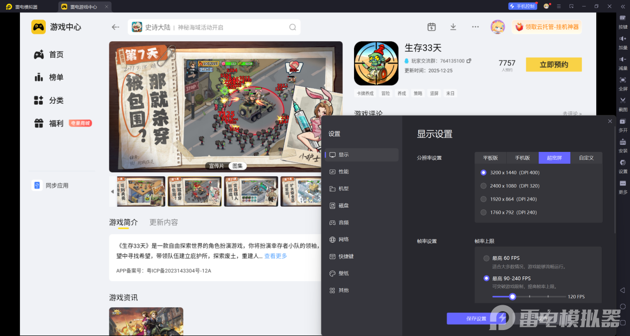 想将生存33天的策略深度与操作精度提升到一个新层次,推荐用雷电模拟器游玩。