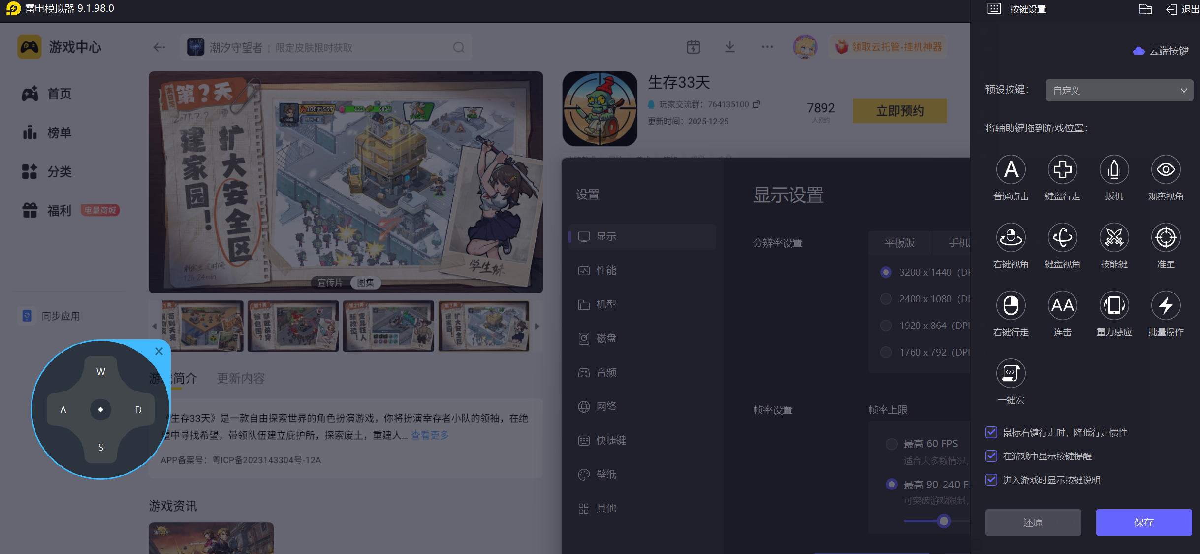 雷电模拟器的高清大屏优势,让生存33天的复杂资源界面一目了然。黑市商品刷新倒计时、活动剩余时间、资源产出速率等关键信息得以清晰展示,助你精准判断购买与囤积时机,避免因手机屏幕局限而错过最优消费窗口。大地图上的资源点分布、敌人动态也尽收眼底,方便你规划采集与作战路线,间接节省因决策失误而损耗的钻石。