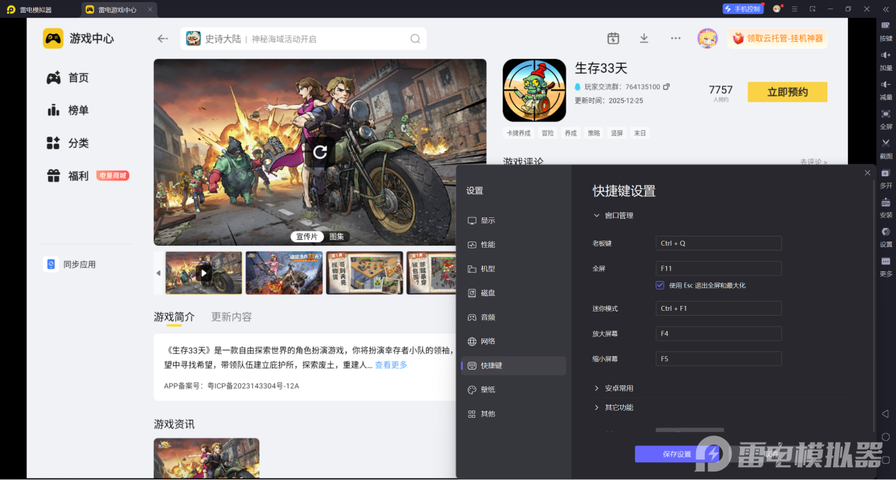 面对日益复杂的生存环境和频繁的丧尸围攻,手机小屏操作常常难以兼顾环境观察、资源切换与精准射击。为了更好地执行上述零氪策略,我们强烈推荐在电脑上使用雷电模拟器进行游戏,它将为你提供更沉着、更精准的生存操控体验。