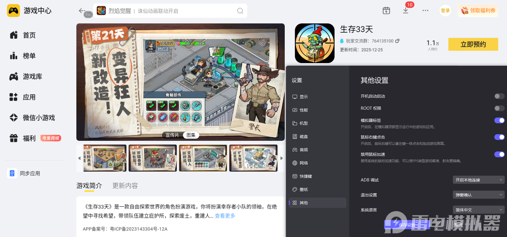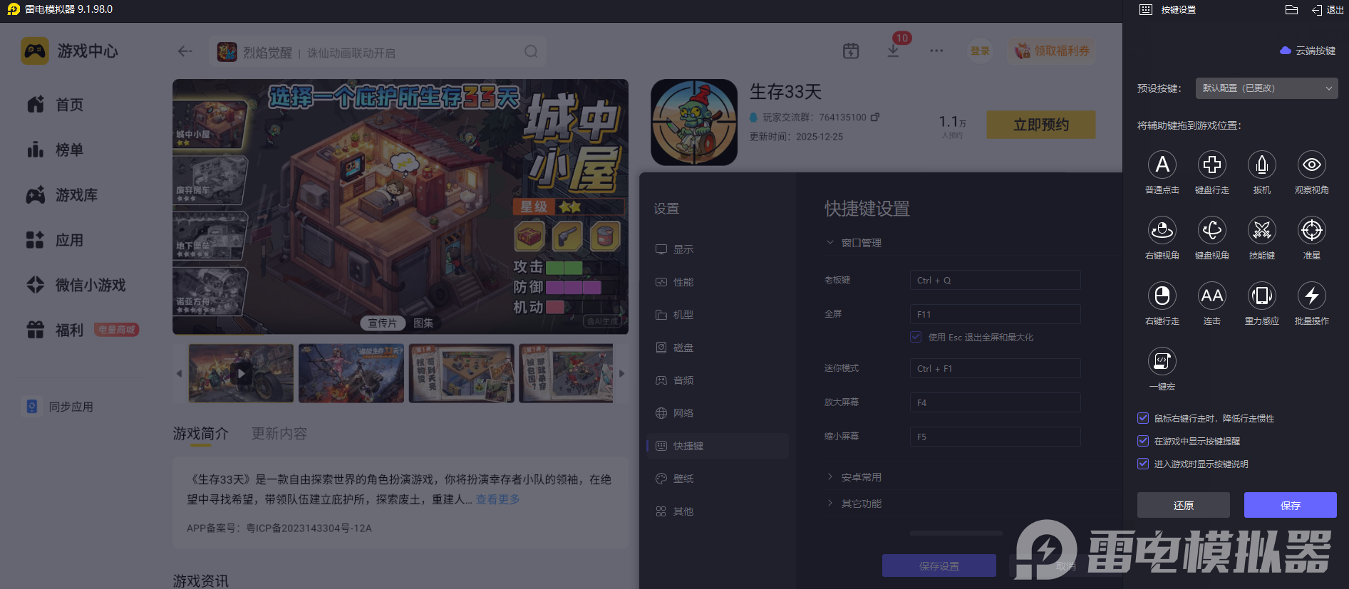 使用合金斧探索废土世界时,需要清晰看清场景里的资源分布和怪物位置,手机屏幕尺寸有限,远处的材料和隐藏的危险容易被忽略。雷电模拟器的4K大屏能完整展现游戏的每一处场景,树木、矿石、建筑的细节都能清晰呈现,用合金斧收集资源、排查危险时,能更直观地找到目标,不会错过关键物资。