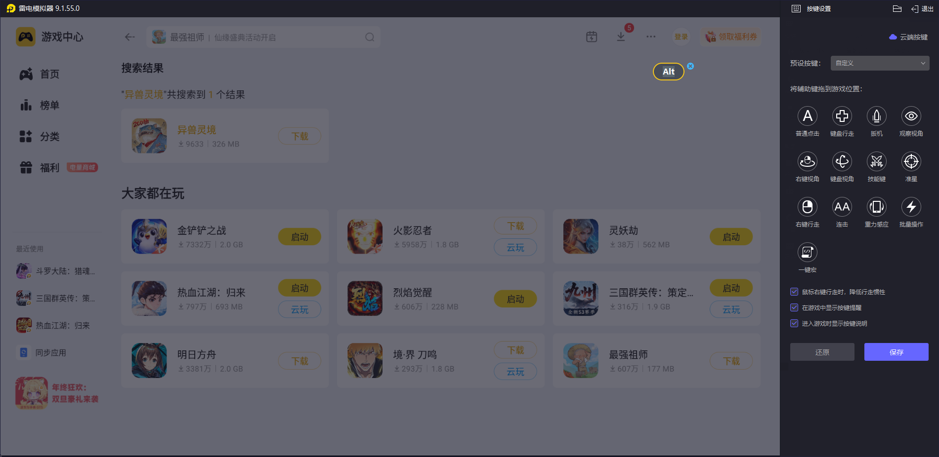 用雷电模拟器玩《异兽灵境》,操作体验会大幅提升。它支持键鼠映射和自定义按键布局,你可以把技能释放、阵容切换等操作绑定到键盘上,触发速度快还不失误。面对游戏里的属性克制搭配、副本攻坚等场景,精准的操作能帮你更快过关,再也不用怕手机触屏误触影响发挥。