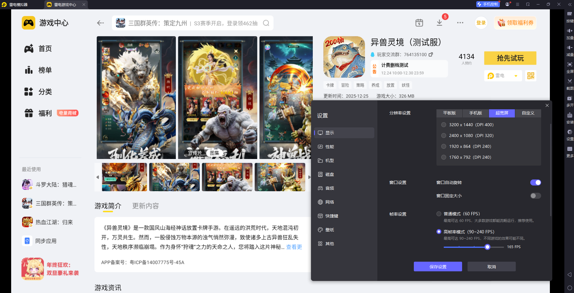 想在电脑上畅玩《异兽灵境》,异兽灵境模拟器是不可或缺的工具。这款手游有丰富的异兽收集、策略对战和挂机养成玩法,用异兽灵境模拟器能打破手机屏幕的局限,带来更舒适的体验。选对异兽灵境模拟器很关键,它能让你在收服上古异兽、挑战副本时更得心应手,不用再担心手机操作不便或画面不够清晰的问题。