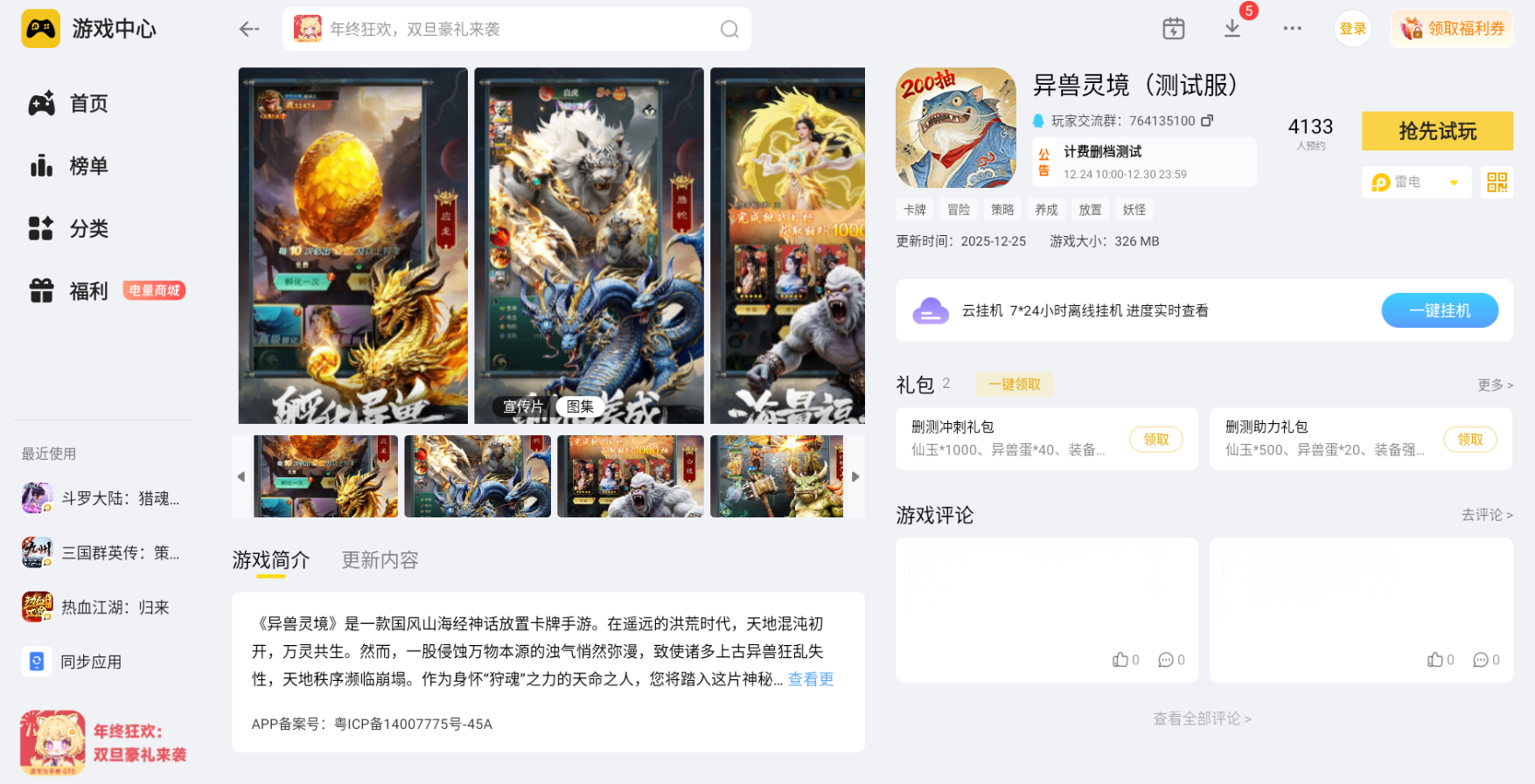 《异兽灵境》主打异兽收集、策略搭配和挂机养成,不用费太多精力就能享受冒险乐趣。雷电模拟器针对这些特色做了精准适配,不管是抽卡收集异兽,还是排兵布阵应对战斗,都能完美承接游戏玩法,让电脑端体验和手机端无缝衔接,不会出现功能适配问题。