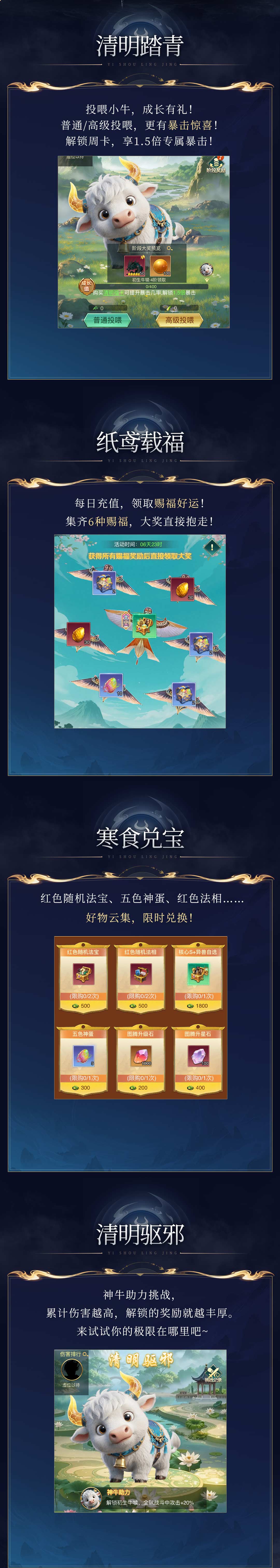 诸位狩魂师,本周预告报信来——妖灵秘境四门开,神牛助力战意来。纸鸢载福乘风起,踏青投喂纳福财。寒食兑宝琳琅满,牛牛奔跑争名排。大荒已备七重礼,静候君至把春摘!大荒万里,待君一战!先奉上礼包码:kxciahg(一键复制领取兑换)本使者这就亮出这期的大荒行事历 ↓↓↓