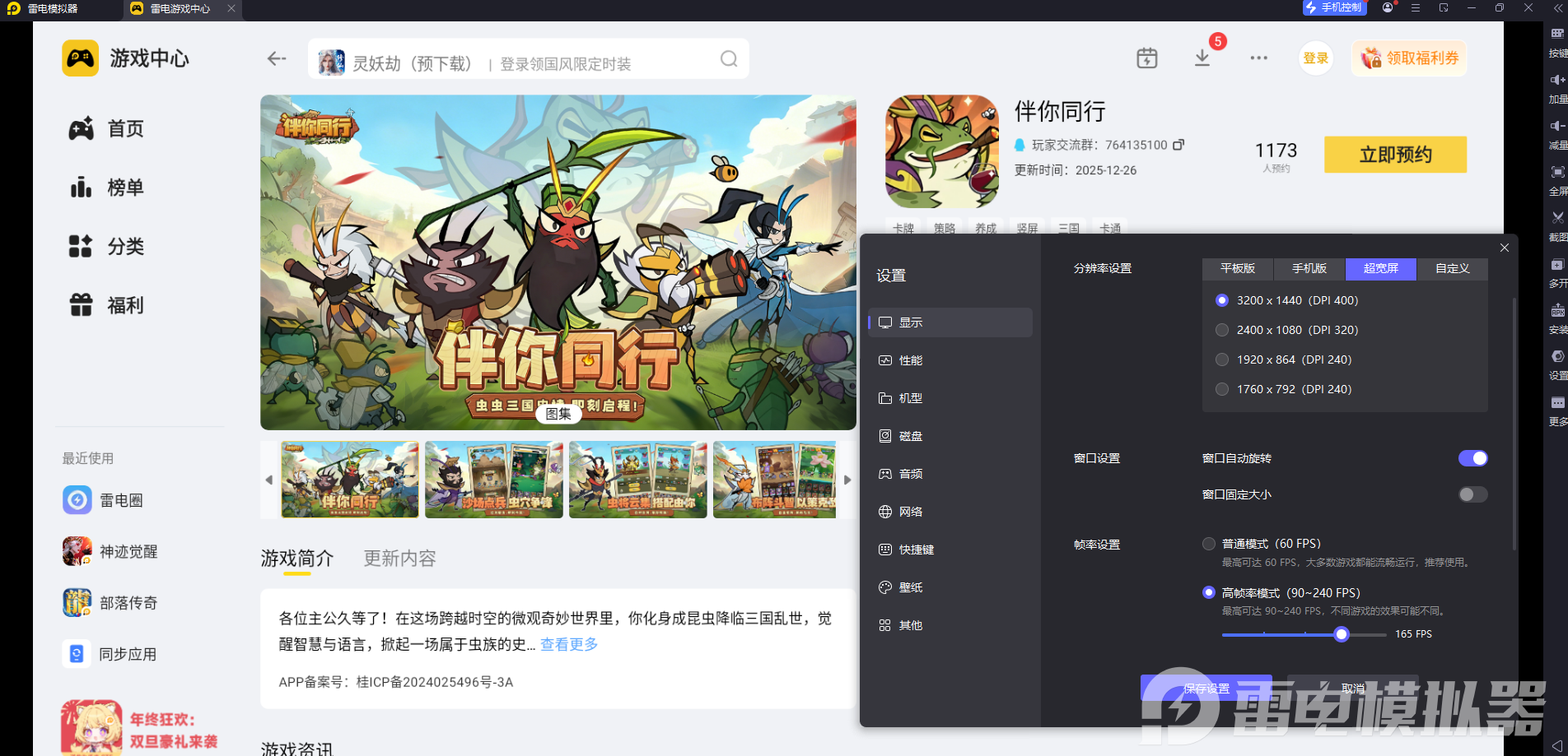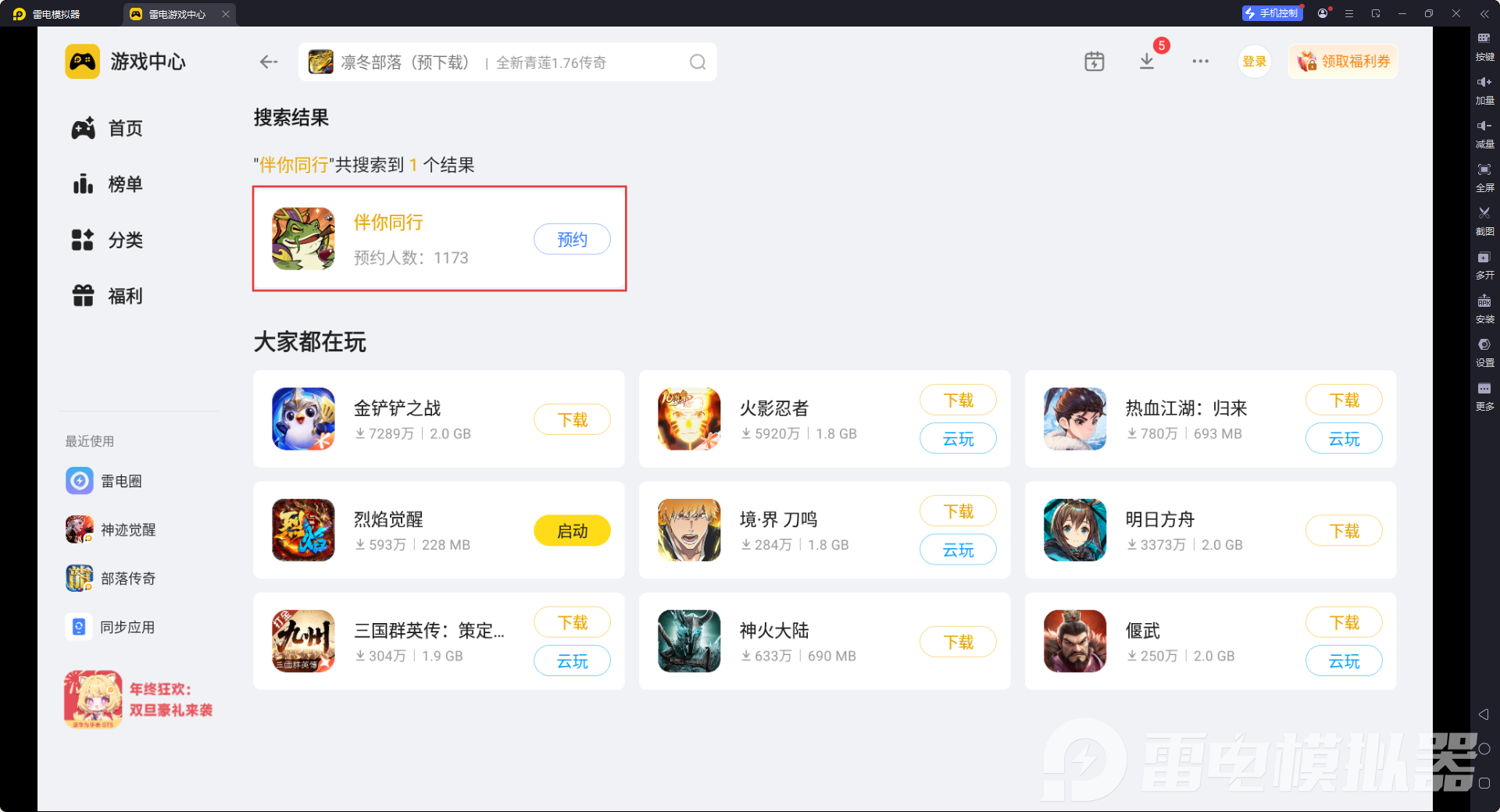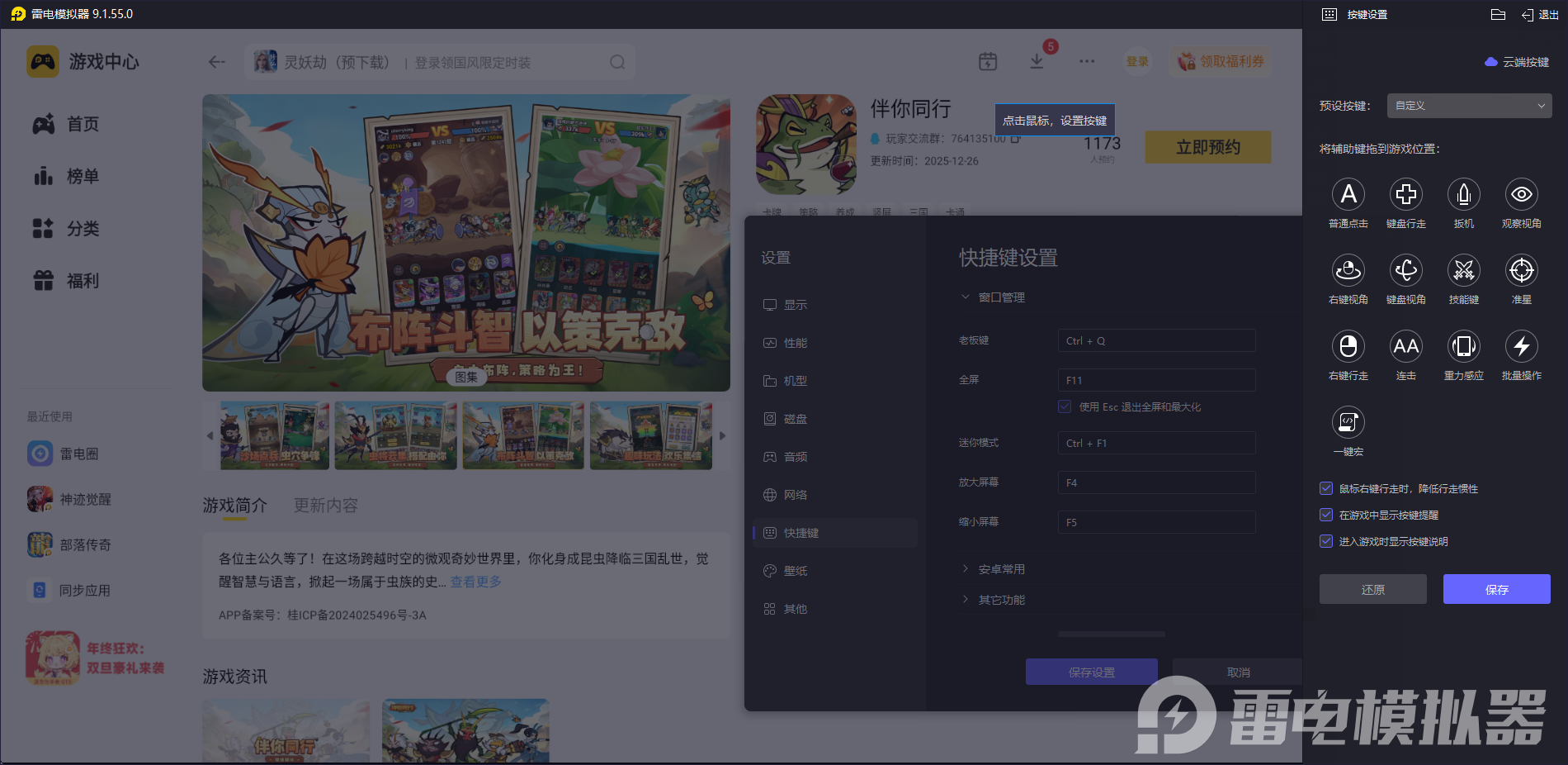 《伴你同行》是Q版三国卡牌手游,以微观虫族视角呈现三国争霸,有萌趣画面、策略配队和离线挂机等特色。雷电模拟器针对这类游戏做了专项适配,能完美兼容所有玩法,是玩这款游戏的优质选择。模拟器里有各种游戏供大家选择,大家在模拟器的雷电游戏中心找到想玩的游戏,就可以畅玩啦。