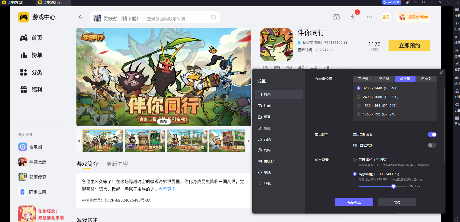 雷电模拟器支持4K高清分辨率和165稳定帧率运行,能把游戏里Q版虫虫武将的细节、微观战场的萌趣场景完整呈现,草叶纹理、技能特效都看得清清楚楚,不会出现模糊或掉帧的情况,让策略对战的视觉体验更舒服。