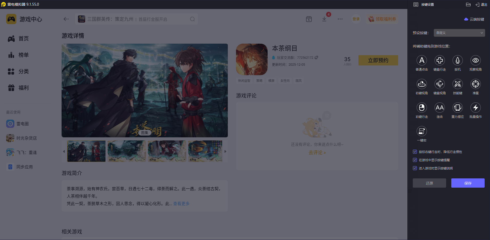 用雷电模拟器玩《本茶纲目》,操作上比手机更顺手。模拟器支持全键位自定义,还自带热门游戏预设按键方案,不用手动调试就能上手。消除战斗时,用鼠标点击或拖拽比触屏更精准,不会出现误触的情况。而且日常收集、和茶元互动时,键盘快捷键也能让操作更快捷,长时间游玩也不会觉得累手。