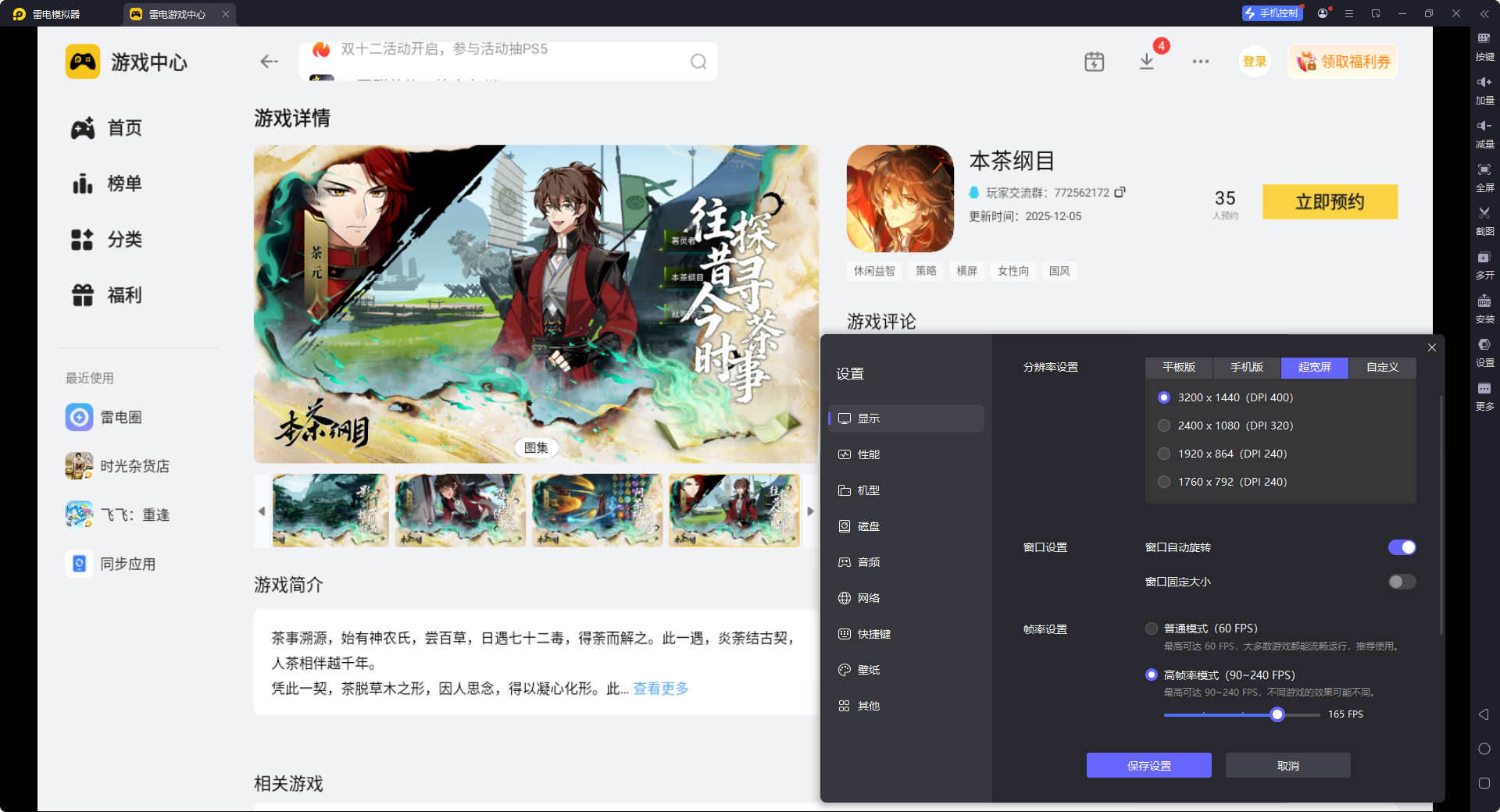 画面方面,雷电模拟器的优势特别明显。它支持4K分辨率,能把《本茶纲目》的国风画质完美呈现,茶元的立绘细节、茶室的布置场景都能看得一清二楚。而且模拟器165帧率稳定,不会出现手机发烫导致的不流畅的问题,不管是看剧情动画还是玩战斗关卡,都能享受流畅清晰的视觉体验,让茶文化的古风美感更有感染力。