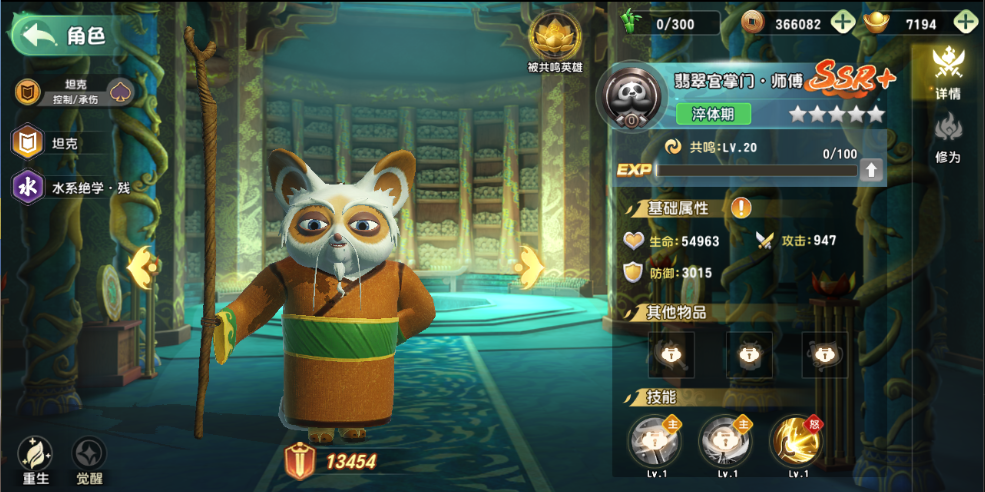SSR+级承伤控制坦克,水系绝学·残。表面上是慈祥长者,打起架来比谁都硬,一套定身法让敌人动弹不得。