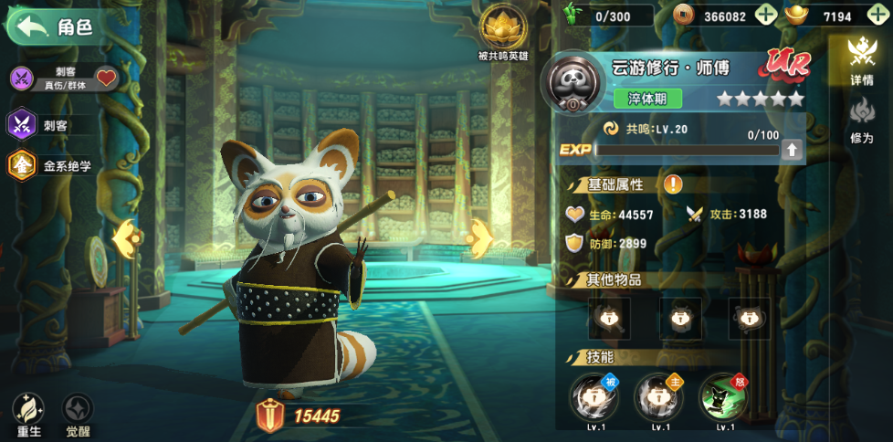 UR级群体真伤刺客,金系绝学。浣熊师父表面上是慈祥长者,打起架来比谁都狠,一套毒刃跃击能让敌方后排瞬间蒸发。