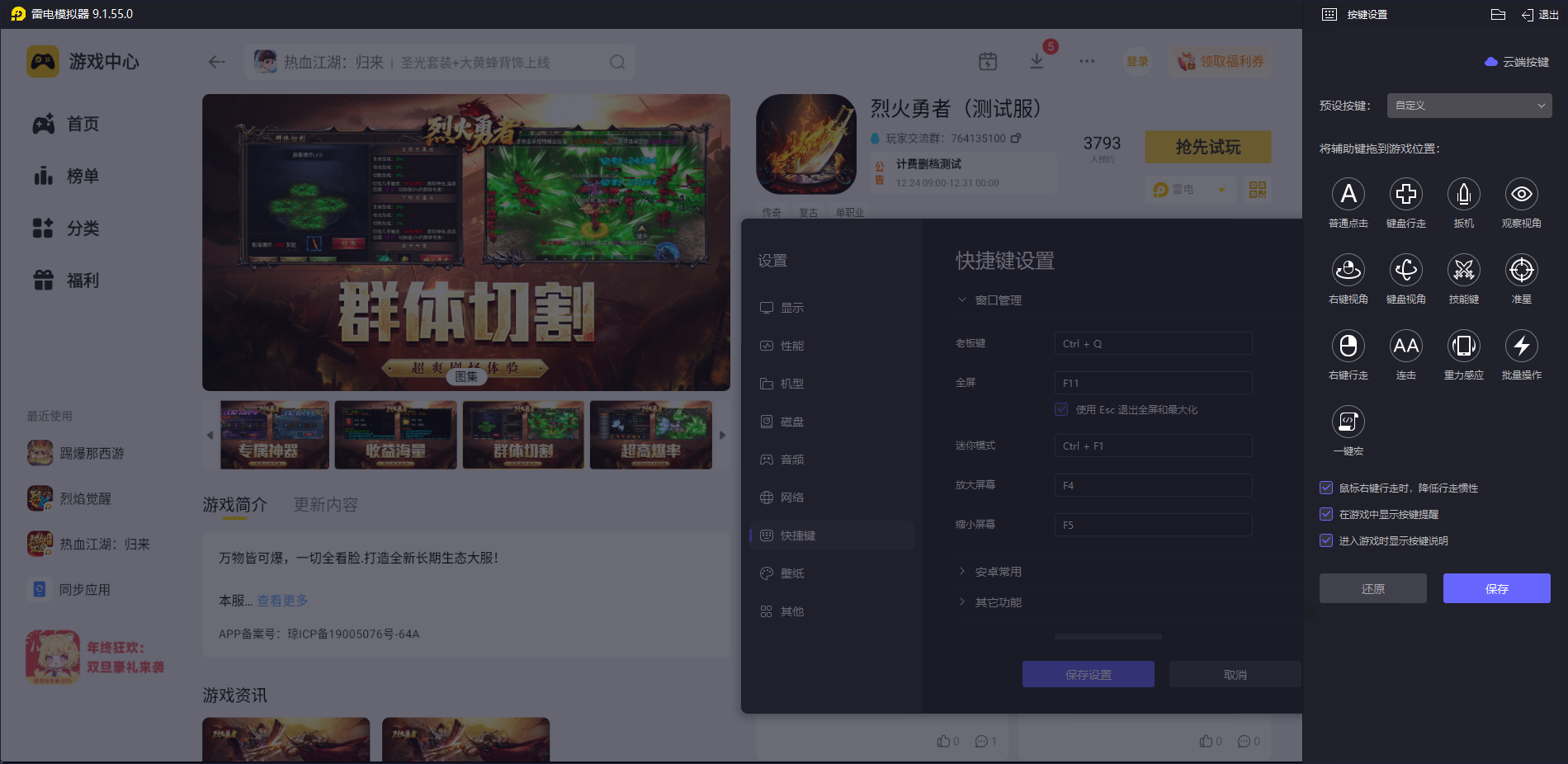 《烈火勇者》的刷怪、竞技都需要灵活操作,雷电模拟器的键鼠适配的特别好。键盘控制走位、鼠标点击放技能,连招释放又快又准,比手机触屏操作更精准。不管是快速刷怪打金,还是和其他玩家竞技比拼,都能让你轻松掌控战局,不用再担心触屏误触影响发挥。