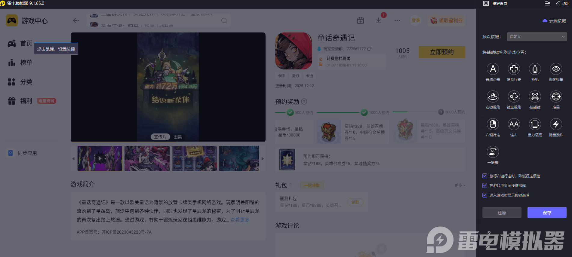 用雷电模拟器玩《童话奇遇记》,可以自定义键盘鼠标按键,技能释放、阵容切换都能精准控制。不用再担心手机触控误触,长时间闯关也不会累手,不管是快速爬塔还是复杂的流派搭配操作,都能轻松掌控,让每一场战斗都更顺畅。