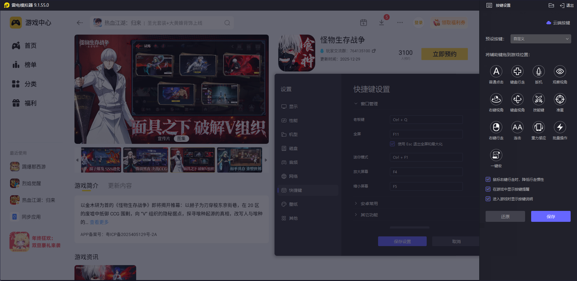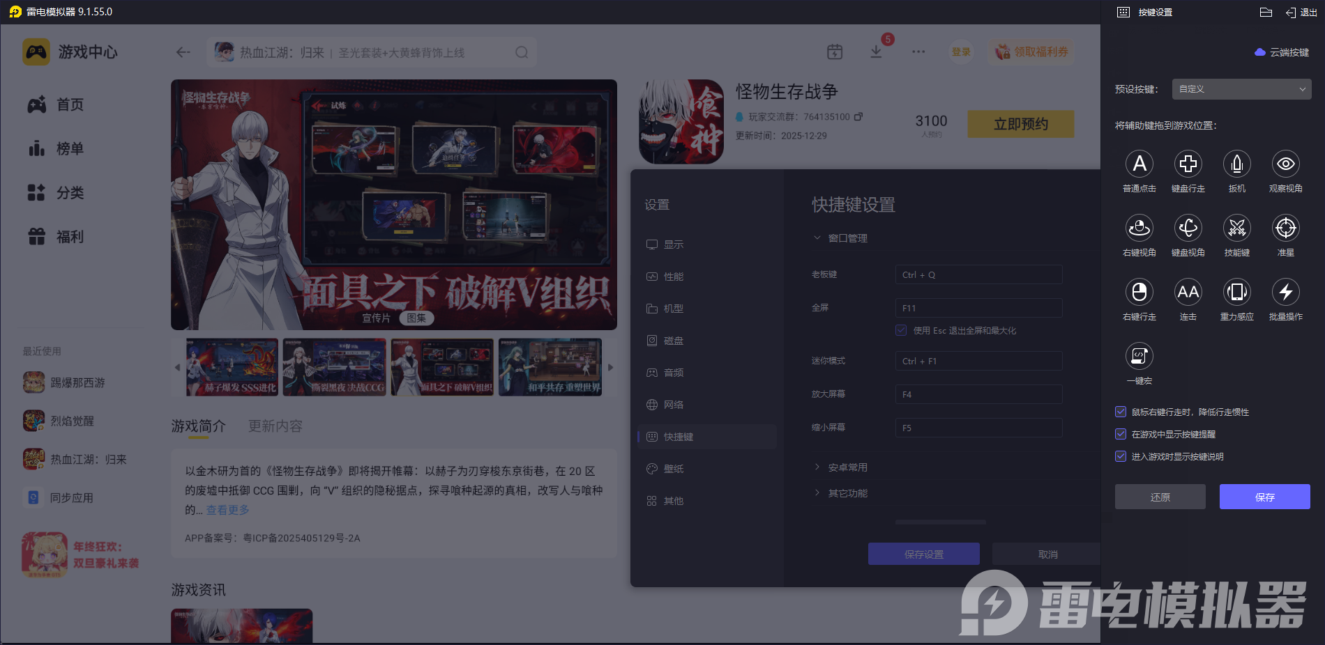 《怪物生存战争》还原经典动漫剧情,有精彩的围剿战役和秘境挑战,赫子与库因克的对决特效炫酷,还能搭配角色羁绊组建专属战队。这种需要精准操作和清晰视野的游戏,用电脑模拟器玩会更过瘾,而雷电模拟器就是适配这款游戏的优质选择。