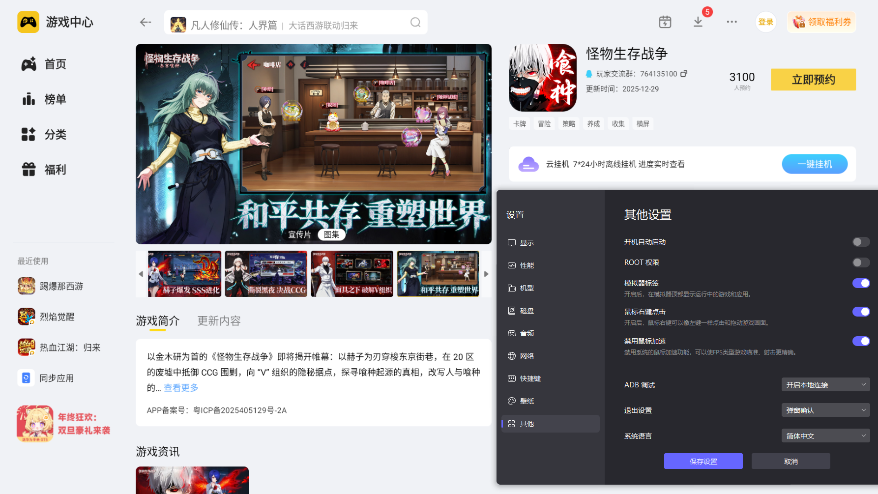 很多玩家想在电脑上体验《怪物生存战争》的热血战斗,怪物生存战争电脑版能带来更开阔的视野和流畅的操作体验,让赫子对决的爽感翻倍。找可靠的怪物生存战争电脑版下载地址很关键,既能避免恶意软件,又能保障游戏稳定运行,下面就为大家推荐合适的下载方式,同时分享一款适配度超高的模拟器。