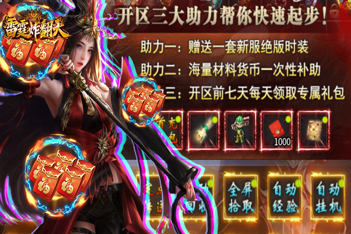 《雷霆炸翻天》全新追云沉默传奇,原创剧情、超大生态、自由交易、不肝不氪。上线豪华福利免费领:首冲礼包、自动回收、自动拾取、自动经验、自动货币。上线即送三大助力快速起步。100+特色剧情自由探索,300+专属BUFF任意搭配,百玩不腻。游戏内所有装备全靠爆!绝无暗坑,毒点!全大陆采取一图一怪一专属的刷怪模式,爆率全开,光速圆梦!皇城对决,兄弟齐聚沙城随时随地征战传奇世界,称霸王城不是梦,兄弟聚首再战传奇!