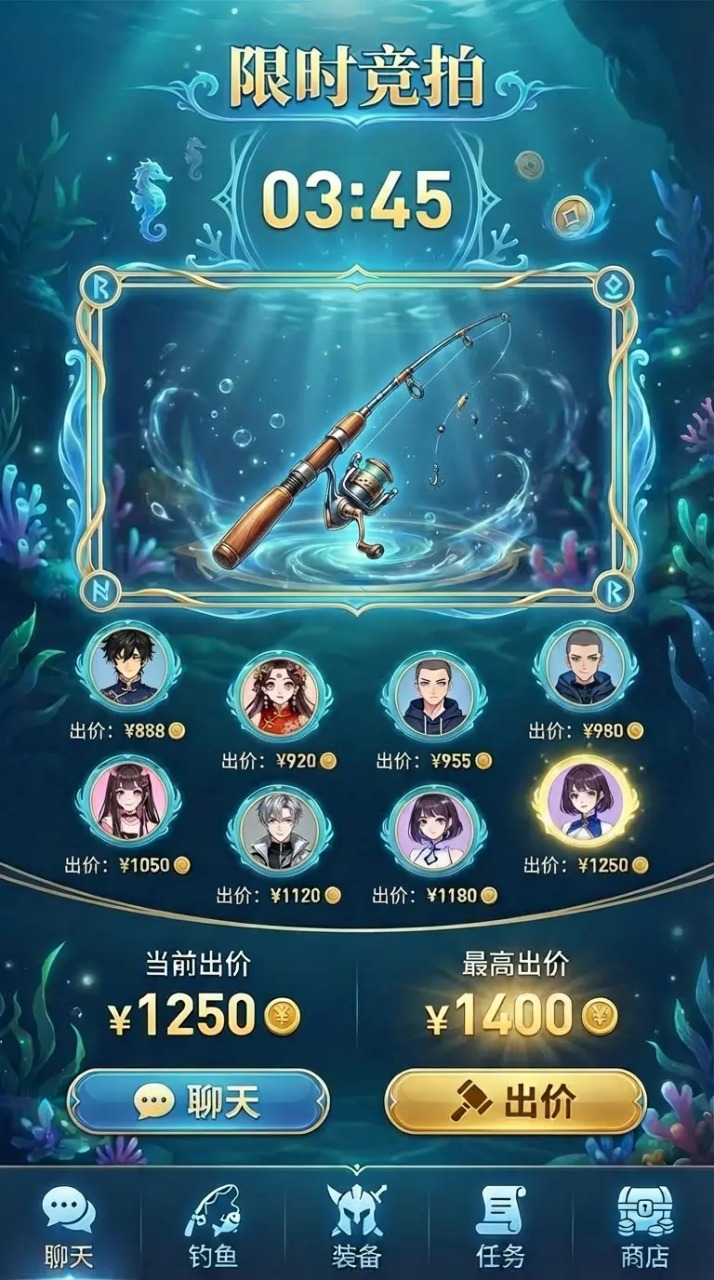 描述 : 鱼有血量, 你有攻击暴击之类的属性, 把鱼血量血槽打空,鱼就会上钩! 比黑河跑鱼更直观!