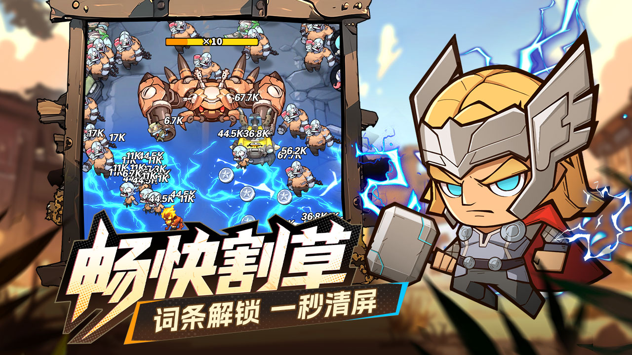 在满屏僵尸的压迫中,随机解锁大招词条,单体秒变AOE,达成勇士羁绊还能触发全屏组合技,一秒清怪瞬间上头。