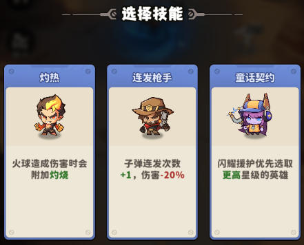 开局前期优先选择合理的技能。缩短英雄战斗时间,更早提高战斗力