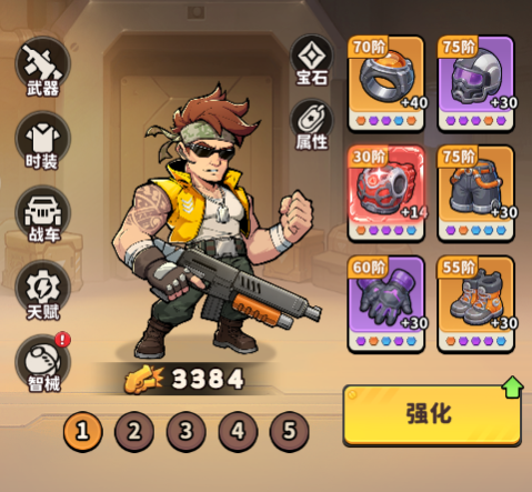 除了超英战士的培养外,指挥官自身的强化也能全面提升队伍战力,指挥官的迎系统主要分为“宝石”、“装备”、“武器”、“时装”、“战车”、“天赋”、“智械”七个部分: