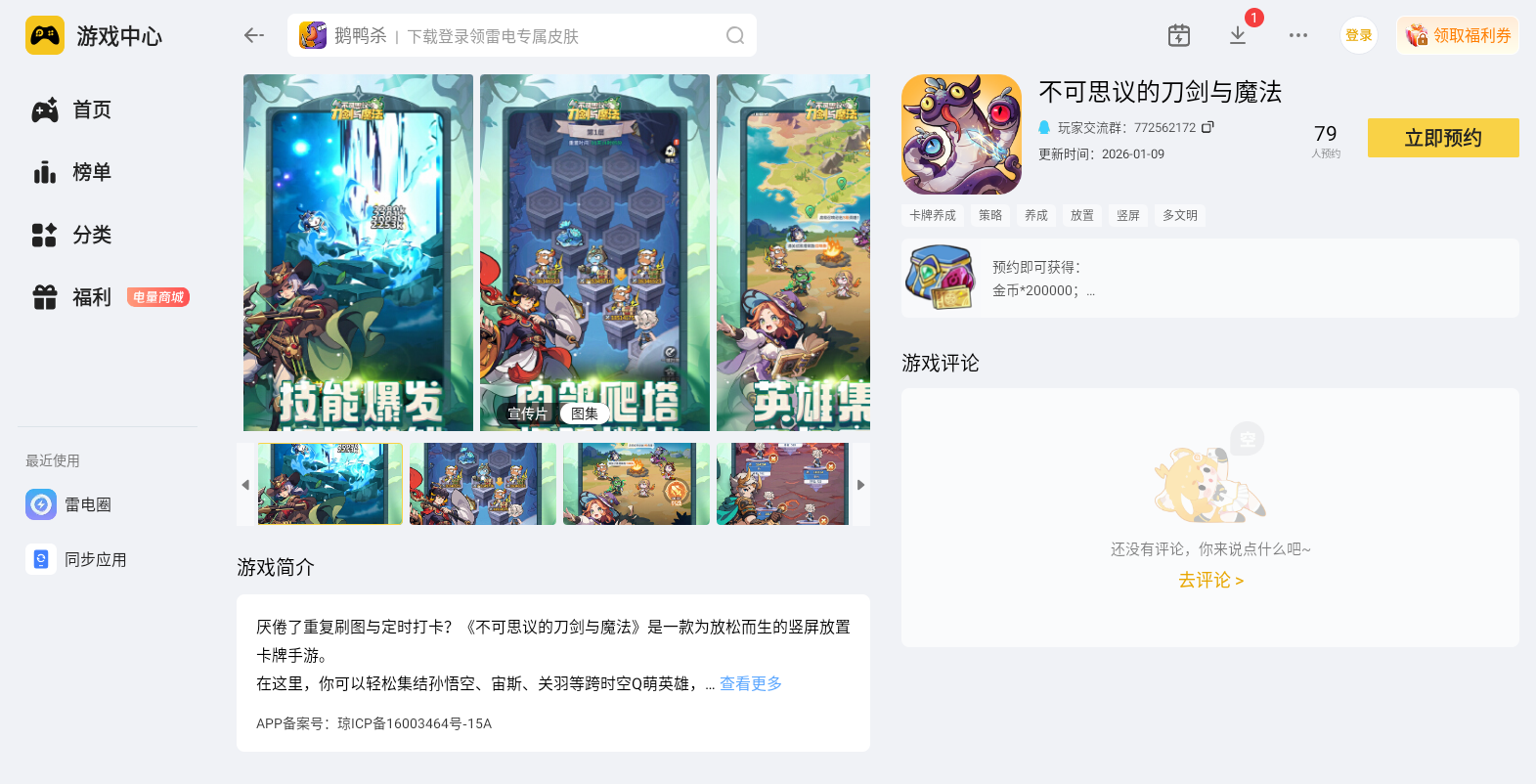 《不可思议的刀剑与魔法》是款轻松的竖屏放置卡牌手游,不用爆肝打卡,挂机也能攒资源。游戏里有孙悟空、宙斯等跨神话Q萌英雄,还能靠风、水、火、光、暗五大元素策略布阵,PVP竞技和社交玩法也十分丰富。这些特点在电脑端游玩时能进一步放大,而雷电模拟器正是适配这款游戏的优质选择。
