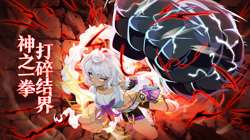 神拳无界-以拳破界,以航逐梦。她是驰骋次元海域的传奇海盗船长,以无匹拳力劈开惊涛骇浪,用赤诚之心守护船员与羁绊,是游戏中兼具力量感与飒爽气质的核心战力。蓬松张扬的白色卷发下,是一双燃着战意的紫眸,爽朗无畏的笑容里藏着海盗的不羁与热血;紫白交织的利落装束勾勒出矫健身形,腰间骷髅锚形配饰、金色挂饰与蓬松毛边,将海盗的野性与新娘的守护感完美融合,每一处细节都彰显着 “以拳破界、以航逐梦” 的信念。