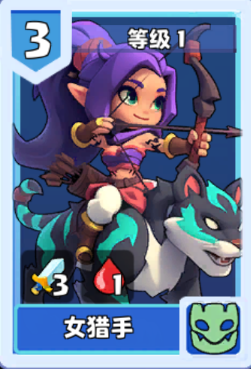 a.女猎手:前期强力远程输出,攻击距离极远,能安全清理敌方单位。作为低品质蓝卡,养成成本低,容易拉满,后期也可以作为副卡使用。