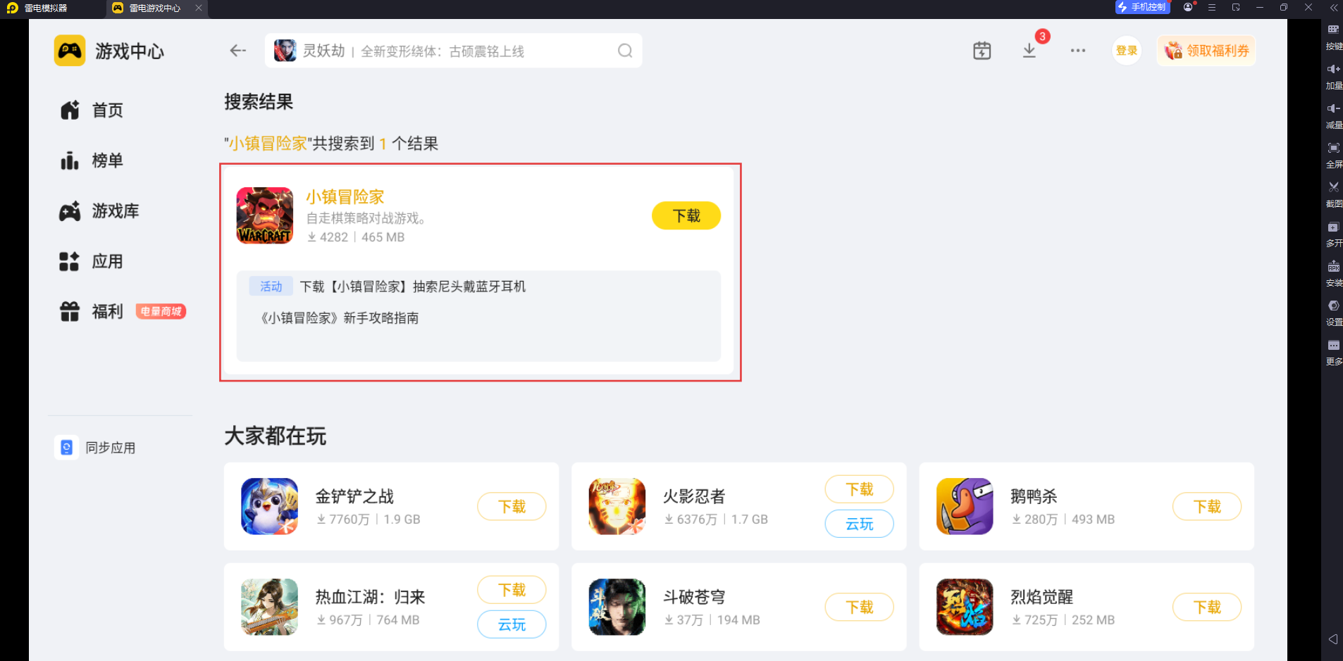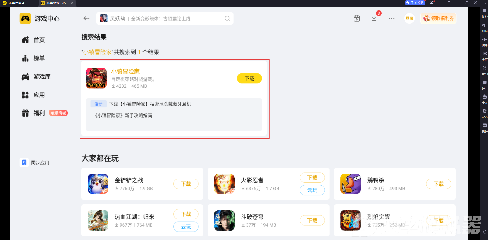 在众多电脑版运行工具中,雷电模拟器是适配《小镇冒险家》的优质选择,它针对手游移植电脑端做了专项优化,兼容度高且使用门槛低,不管是新手玩家还是资深用户,都能快速上手,是目前玩家口碑较好的游玩渠道。大家在雷电模拟器中的雷电游戏中心搜索“小镇冒险家”然后下载就可以开始游玩之旅啦。