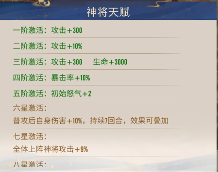 3.十星被动:释放技能后追加一次普攻,和飞三被动:己方佛禅阵营神将释放技能时,追加释放一次普攻。每回合可以增加三次普攻,绝对是输出英雄的克星。如若搭配法相的最终伤害增加和附带间接伤害肉盾也很难在悟空的棍棒下幸存。
