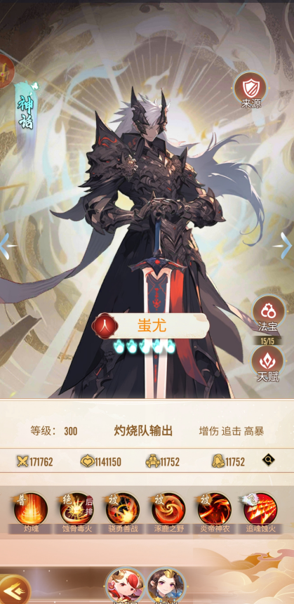 - 站位建议:置于队伍中后排,避免被集火,优先保证输出环境,由前排神将提供保护与增伤,让蚩尤能安心输出。